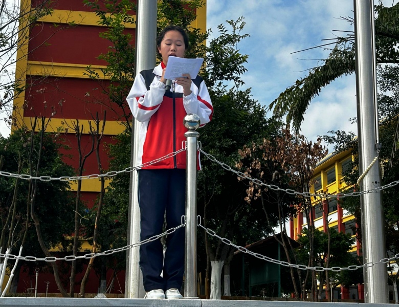 为引导学生正确对待挫折,增强抗挫折能力,培养坚强的意志和健全的心理素质,12月11日上午,建水润泽高级中学举行以“学会面对挫折,坚毅自强笑对人生”为主题的升旗仪式暨健康成长教育活动。随着庄严的升旗仪式开始,国旗护卫队的队员们精神抖擞,昂首阔步走向升旗台,鲜艳的五星红旗伴随着雄壮的国歌声冉冉升起,迎风飘扬,师生肃立,齐唱国歌,庄严地向国旗行礼。升旗仪式结束后,学生代表龚怡菲和教师代表杨忌老师分别作了